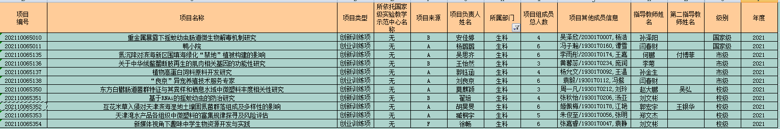 根据《关于开展2021年度大学生创新创业训练计划项目申报工作的通知》和《bat365在线官方网站大学生创新创业训练计划项目管理办法(试行)》等要求,经学院推荐,教务处审核,现场答辩,专家评审,公司2021年度申报并获批11项“大创项目”,其中创新项目获批校级5项,市级4项,国家级2项,受益学生48人次,累计获资助经费9万元,详情如下: