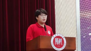 在校生代表生物科学(师范)2001班徐海轩发言,他鼓励同学们,初入校园要尽快的适应并找到自己的目标,遇到困难和瓶颈要敢于坚持并勇于突破,学会培养和锻炼自己独立的科学思维能力,去迎接和体验更精彩的大学生活。
