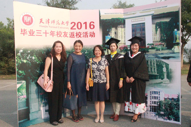 晨曦照耀在波光粼粼的秋水湖面,八里台纪念园里的雪松静默的等候着它们的老朋友。音乐厅门口伫立着的老校区的照片勾起了许多人对于青春的记忆,学长学姐们重新穿起学士服,这时的他们笑容依旧灿烂明朗,和三十年前一样。阔别三十年的老友终于重聚,大家握手拥抱,嘘寒问暖,共同回忆那段有彼此参与的美好时光。
