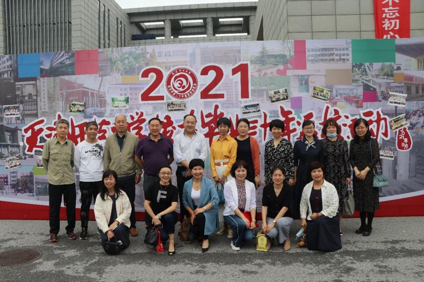 仪式结束后,大家一起在昔日毕业照前合影留念。