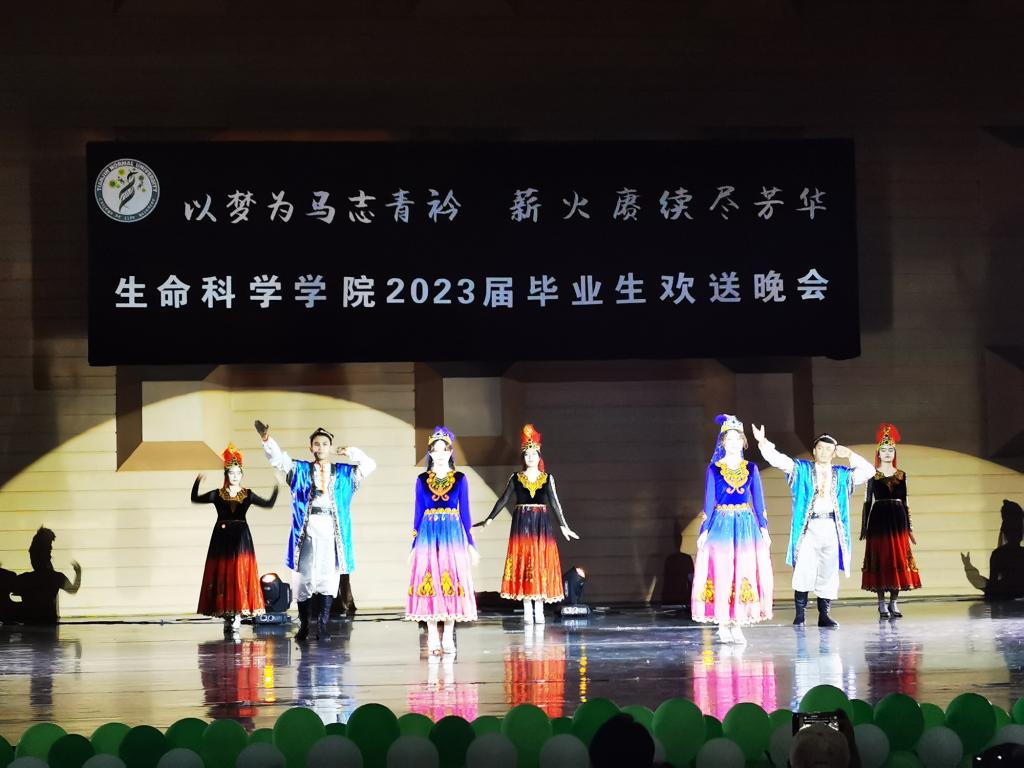 晚会在学院啦啦操花球表演中拉开帷幕。同学们共同演绎了歌曲串烧、民族舞蹈、情景剧等多种类型的节目,精彩纷呈。少数民族舞蹈《多彩中华》汇聚了学院各民族的同学,他们用本民族特色的服饰和舞蹈演绎民族特色,以独具魅力的艺术形式表达了生科学子对祖国的热爱,祝福祖国繁荣昌盛、国泰民安。师生小合唱《创造106》表达出毕业生离别将至的留恋与依依不舍,寄予了老师们对毕业学子诚挚的祝福。情景剧《传承》生动的演绎出学院学生干部队伍,一届届接力传承,追忆大学生活点滴、憧憬美好未来,并通过为学院芝兰书屋捐书形式表达出对老师悉心教导的感谢。