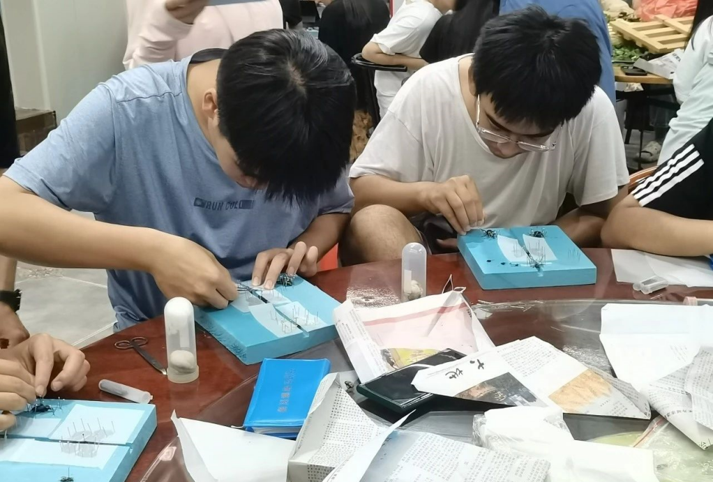 下山后,在老师的专业指导下,各组同学对昆虫标本、植物标本进行整理和制作。