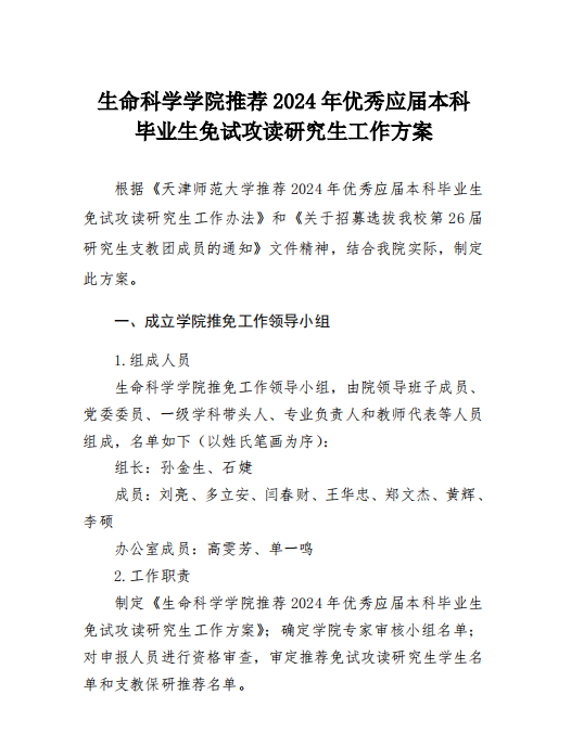 关于推荐2024年优秀应届本科毕业生免试攻读研究生工作方案
