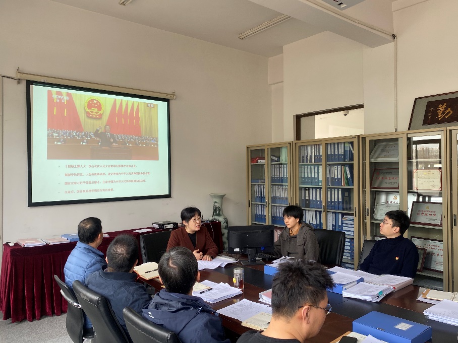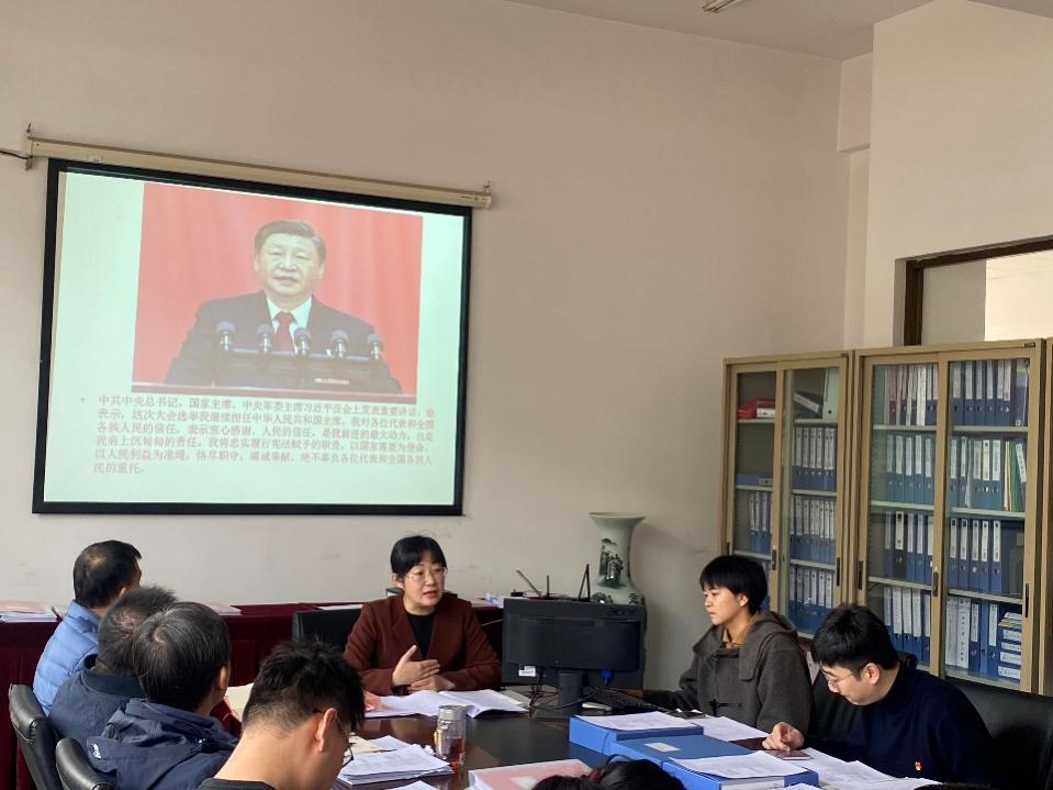 3月14日领导班子集体学习,学习习近平总书记重要讲话精神的主要内容和基本要求,深刻认识今年全国两会的主要特点和重大意义,认为习近平总书记再次全票当选国家主席、中央军委主席,是党之大幸、国之大幸、民之大幸,要更加坚定以习近平新时代中国特色社会主义思想为指导,坚定拥护“两个确立”、坚决做到“两个维护”,将落实党的二十大精神与全国两会精神贯穿起来,进一步在科教兴国战略、人才强国战略、提升科技自立自强能力、从严治党等方面,主动对标对表,履职尽责,发挥积极能动性。