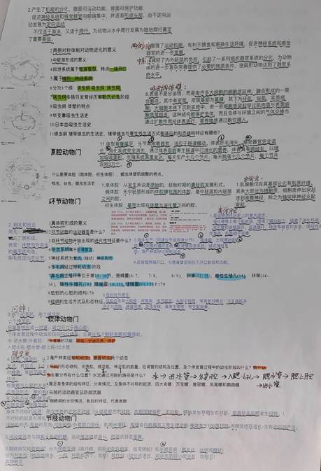 余亦淇同学的笔记对节肢动物门的重点特征和常见种类进行了突出显示,如异律分节、几丁质外骨骼等,还介绍了节肢动物门的下位分类,如三叶虫亚门、甲壳亚门,有助于更好地把握学习重点。