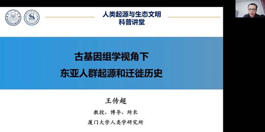 近日,bat365邀请厦门大学王传超教授在“人类起源发展与生态文明”科普讲堂做线上科普讲座,题目为《古基因组学视角下的东亚人群起源和迁徙历史》。王传超教授是厦门大学人类学研究所所长、博士生导师,国家级人才称号获得者,国家社科基金重大项目首席专家,福建省高层次A类人才。